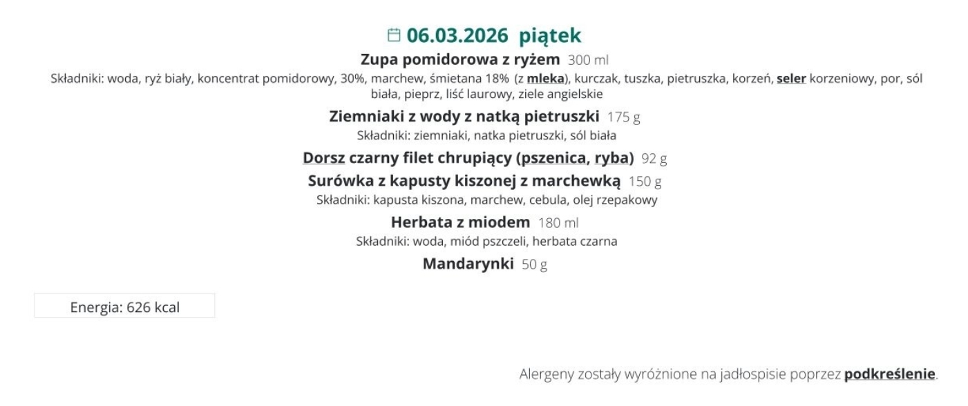 Menu Szkoła Podstawowa